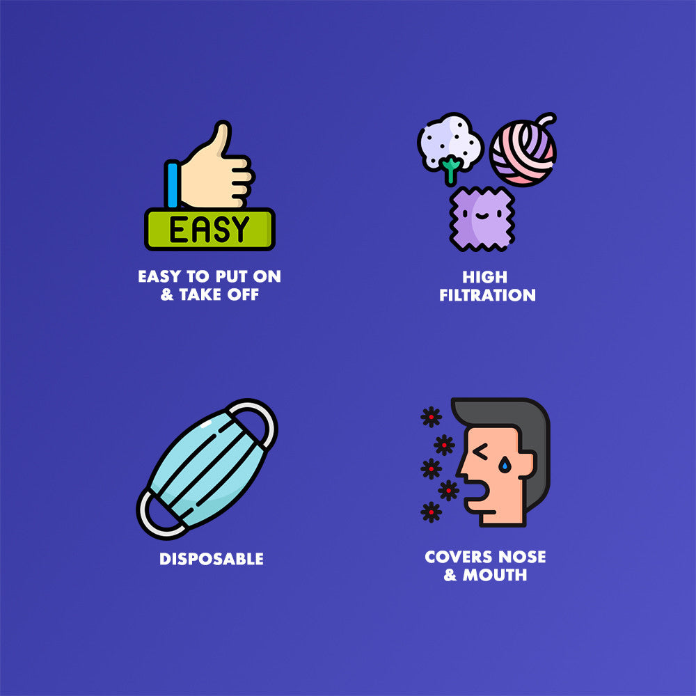 • Versatile Use – Ideal for daily wear at work, travel, healthcare settings, or public spaces. Disposable for hassle-free use.