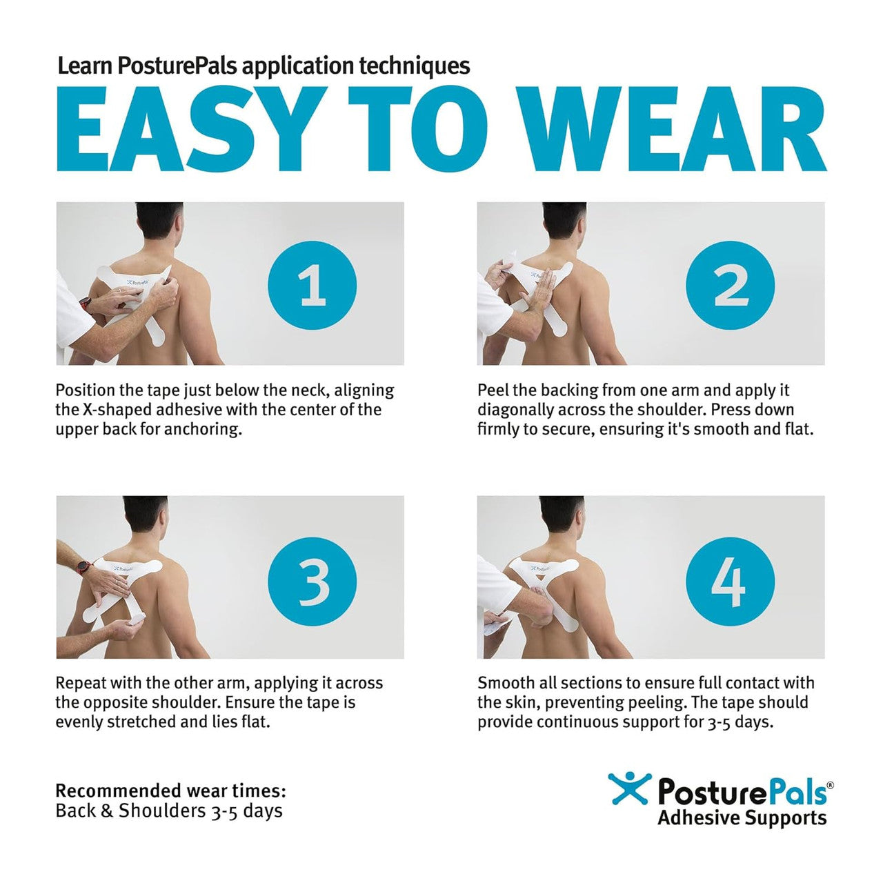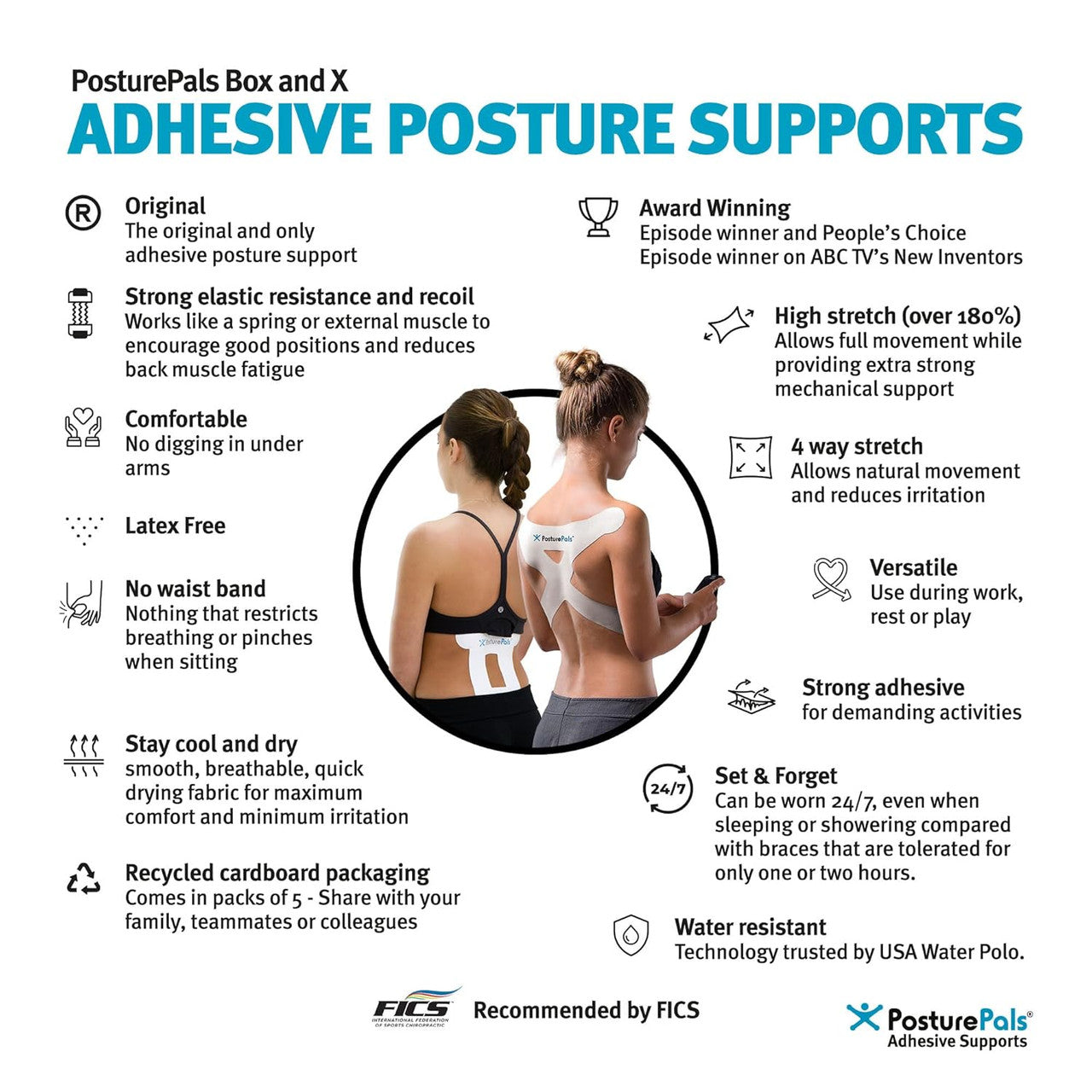 Dynamic Tape® PosturePals are adhesive support tapes that utilize the same revolutionary technology as Dynamic Tape® to help manage posture and improve positioning. Designed to provide targeted support without restricting movement, PosturePals gently correct positioning while allowing natural motion. Available in two versatile shapes—PosturePals X and PosturePals Box—they offer effective support for a range of postural and injury-related issues, from the neck and back to the shoulders and legs.