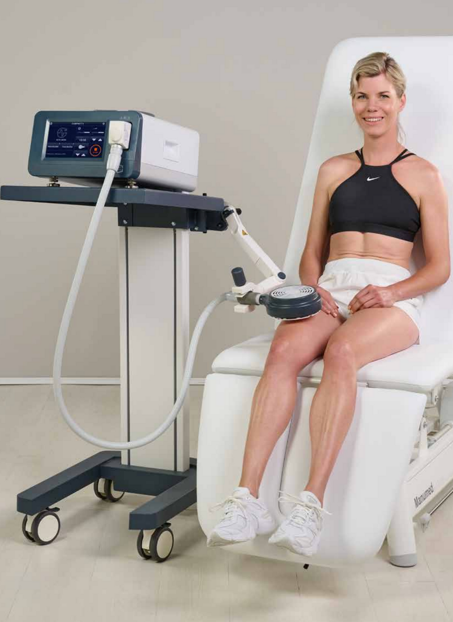 The Enraf-Nonius COMPACT-II is an advanced High Energy Inductive Therapy (HEIT) device designed for non-invasive stimulation of nerves, muscles, and blood vessels. Utilizing a powerful electromagnetic field, the COMPACT-II effectively relieves pain, improves blood circulation, and enhances muscle stimulation—making it an essential tool for physical therapists and chiropractors. The device is highly versatile, allowing for both static and dynamic therapy applications, and does not require direct skin contact, ensuring a hygienic and comfortable treatment experience. Featuring an intuitive 8-inch touchscreen, 15 predefined treatment protocols, and user-defined favorites, the COMPACT-II is designed for ease of use and efficiency.