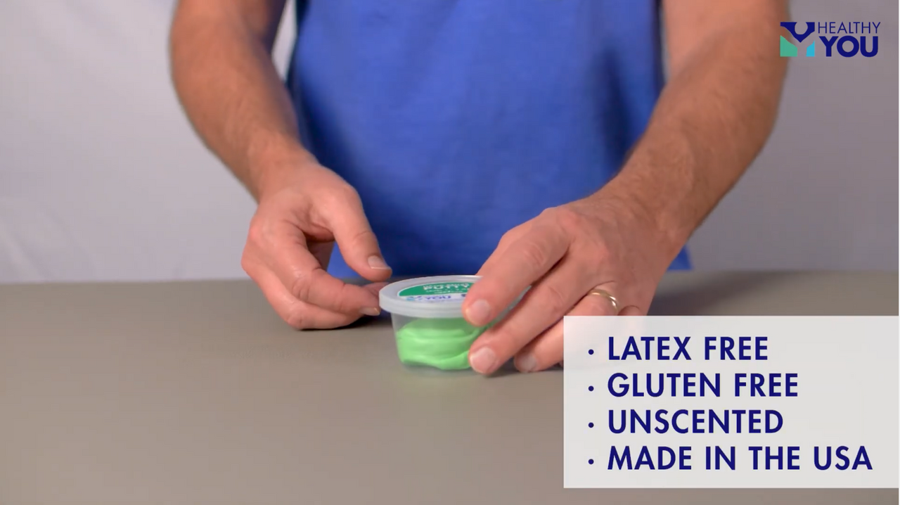 The Healthy You™ Hand Rehab Putty is a professional-grade therapy tool designed to strengthen hand grip, improve dexterity, and relieve stress. Made from premium, non-toxic silicone and available in five color-coded resistance levels, it’s ideal for physical therapy, rehabilitation, and home exercise routines. Whether you’re recovering from surgery, managing arthritis, or simply looking to boost hand strength, this versatile putty can be squeezed, stretched, twisted, or pinched to suit your needs. Each 4 oz portion comes in a resealable container for hygienic reuse and convenient storage. Safe for all ages and skin types, and proudly made in the USA.
