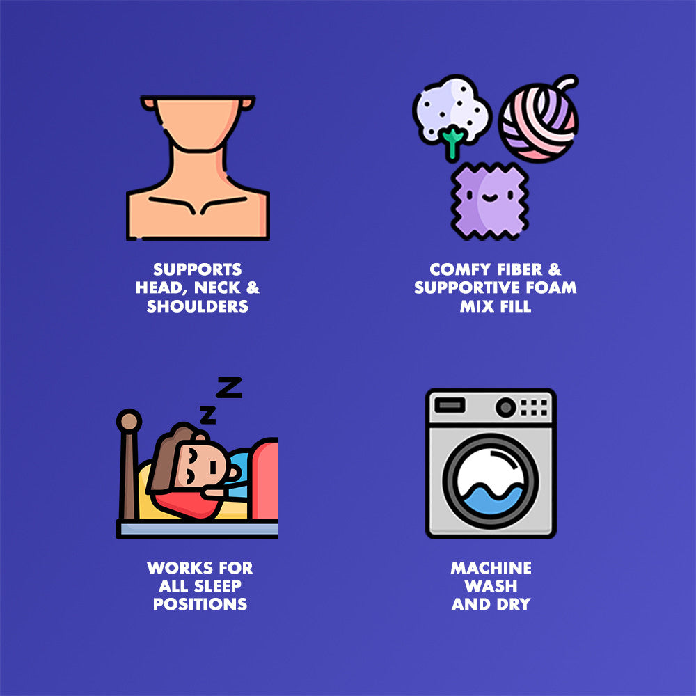 Our premium cervical support pillows are filled with our proprietary blend of comfy fiber and supportive foam
