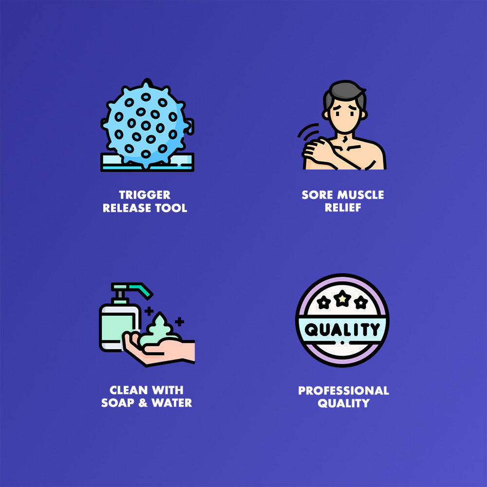 The Healthy You Spiky Massage Balls are expertly designed to provide effective pain relief and muscle recovery through myofascial release and trigger point therapy. Covered with spikes, they stimulate increased sensation, helping to relieve sore muscles, improve range of motion, and enhance muscle performance. Available in three levels of firmness (soft, medium, and firm) and two convenient sizes (7.5 cm and 9 cm), these versatile massage balls are perfect for professional or personal use. Use them against a wall, floor, or chair for targeted self-massage and muscle relaxation. Compact and easy to carry, they’re ideal for home, office, or gym use. Designed for use on soft tissue only, they are easy to clean with soap and water for long-lasting use.