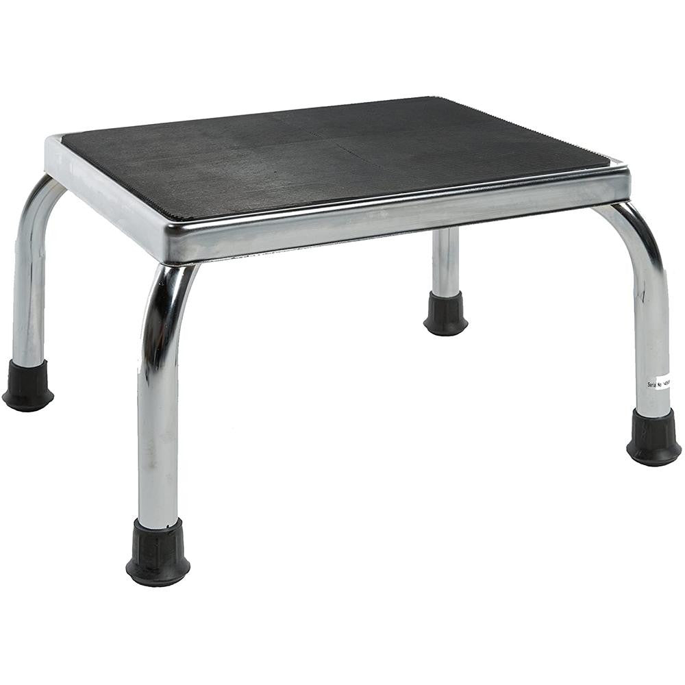 Non-skid, ribbed rubber mat platform Rubber tipped legs 9.5"h x 15"w x 16"d Weight limit 350 lbs 1 year limited... Read more