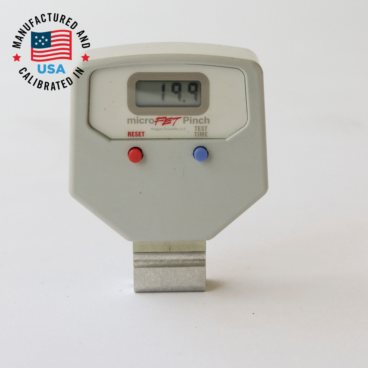 The digital microFET Pinch is a digital pinch dynamometer that is used to measure pinch strength. The pinch gauge allows for measure tip, key and palmer pinch strength. Measurements are accurate and repeatable. The advantage of microFET Pinch is its digital design and display, to provide increased accuracy and precise measurement. Now with Bluetooth wireless capability, you can enjoy freedom from inconvenient cords or cables using the wireless Pinch with either microFET software package or FDC FET Data Collection Research software.