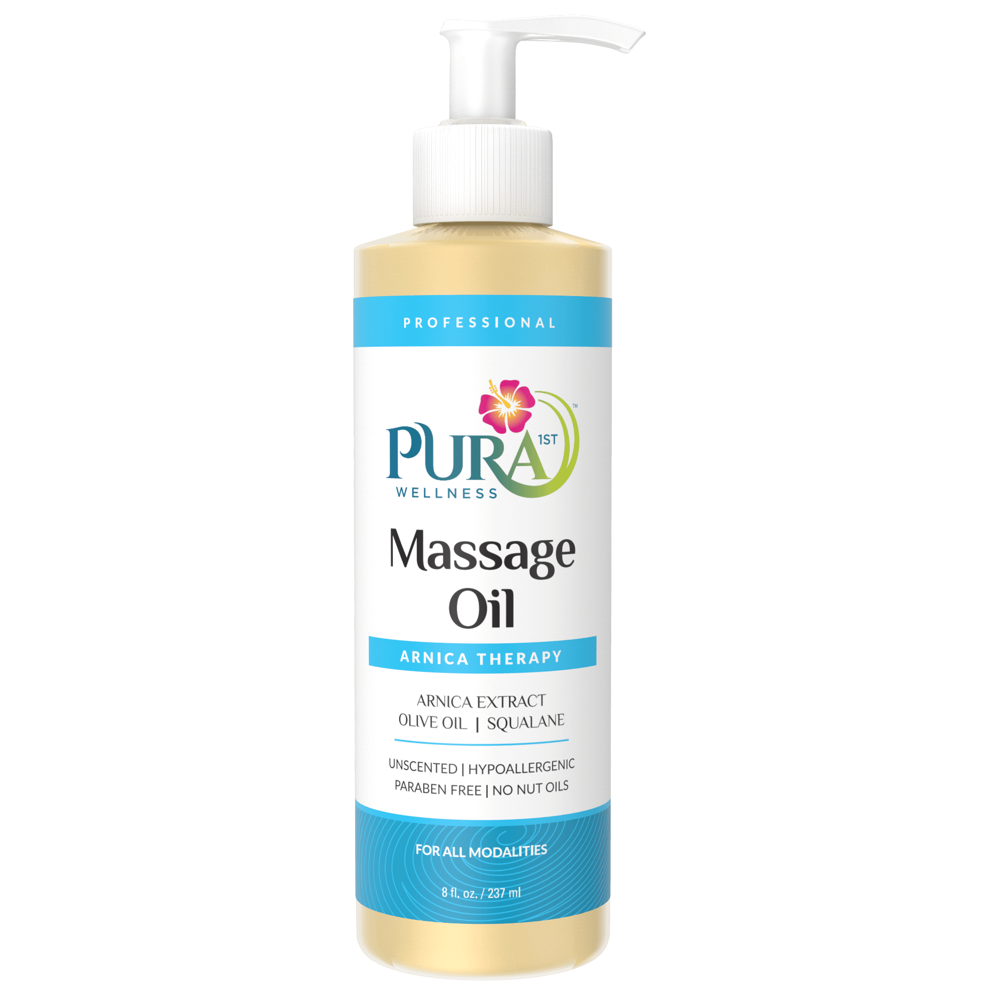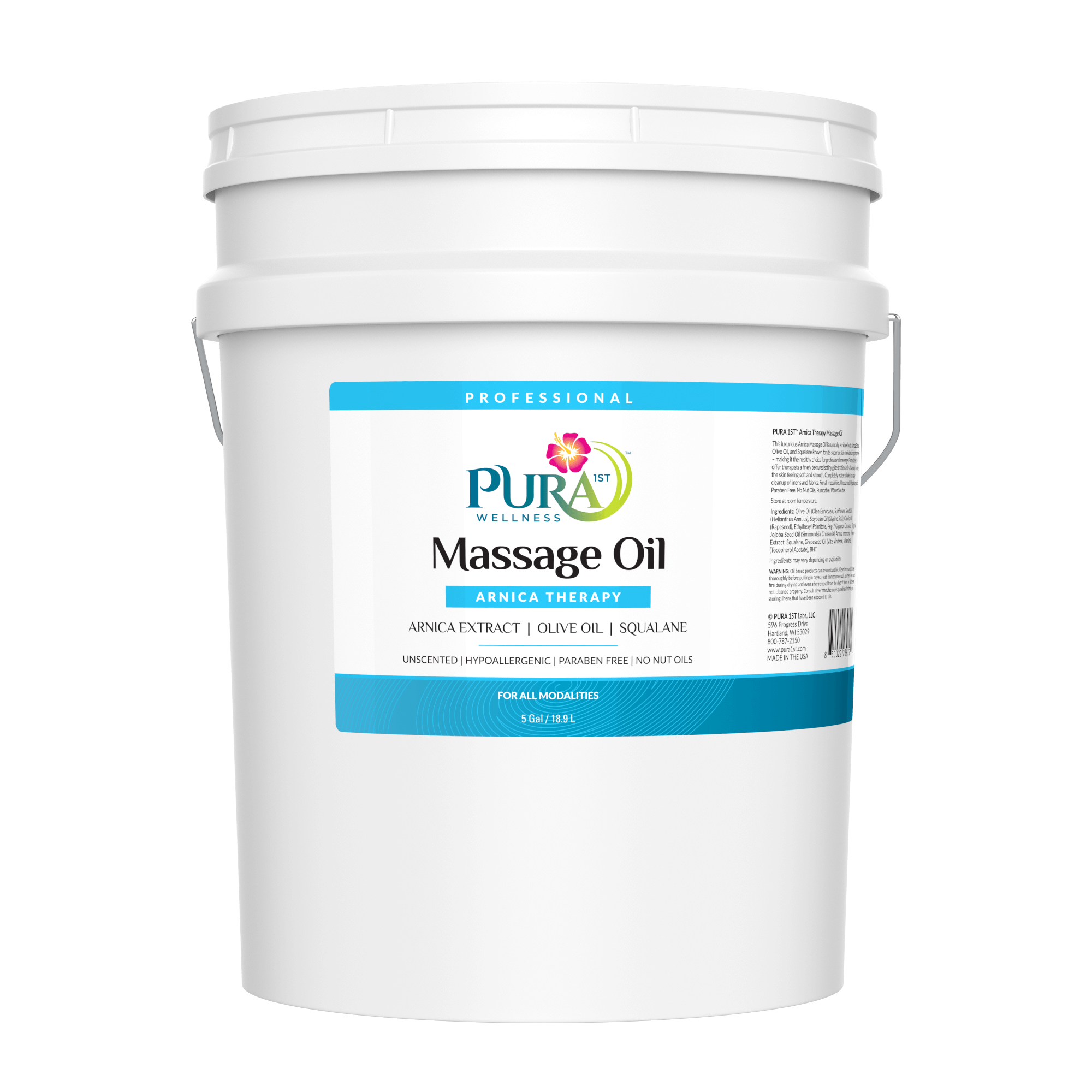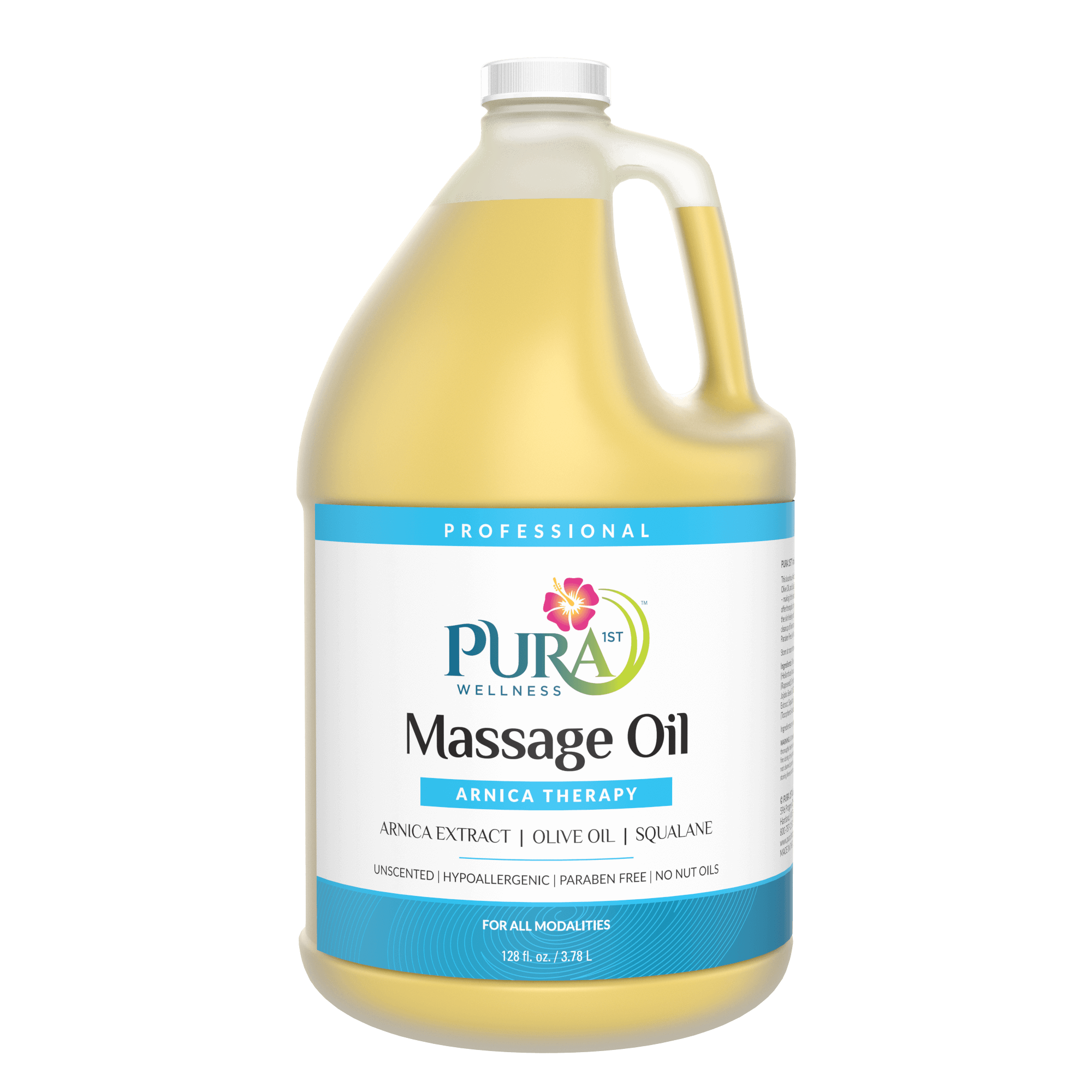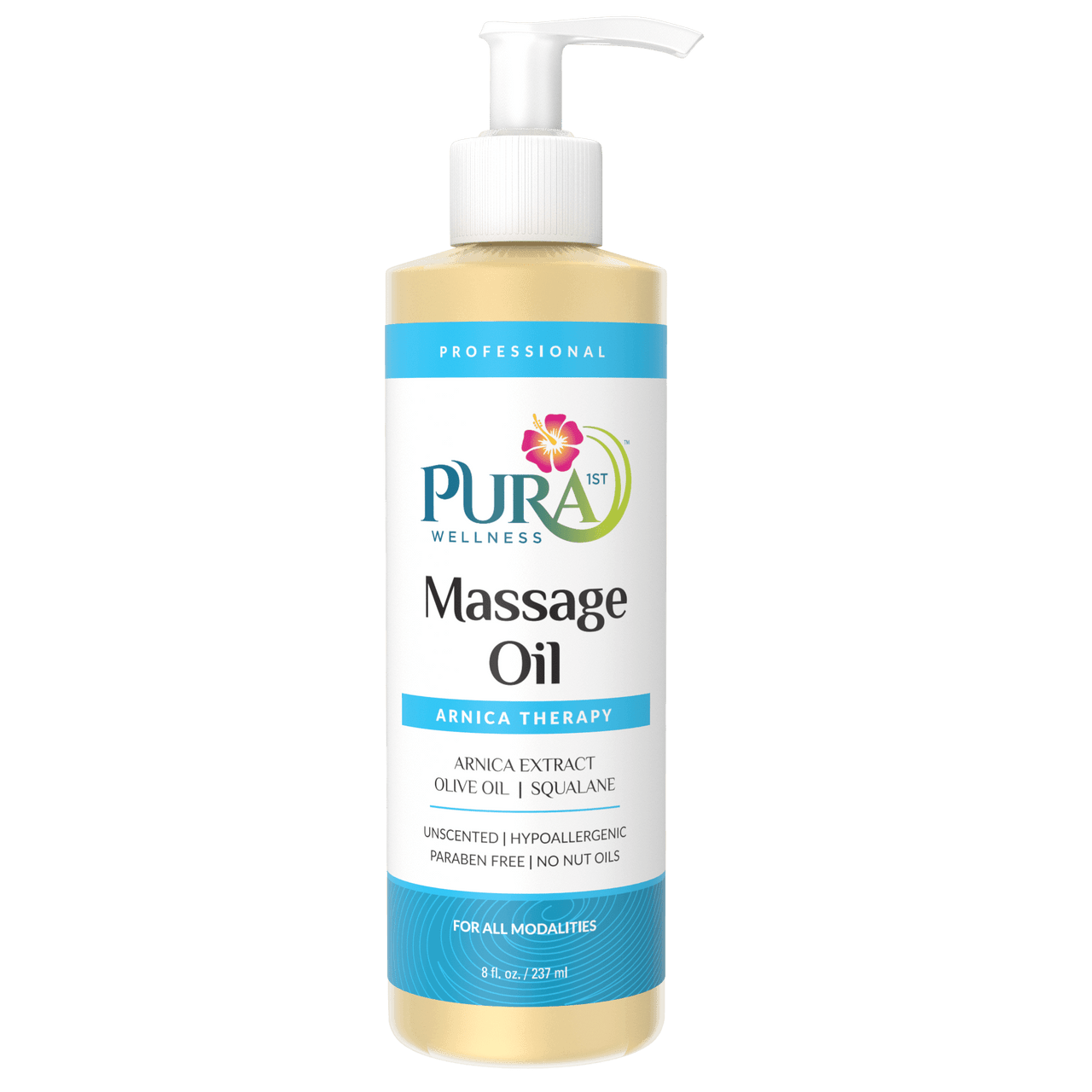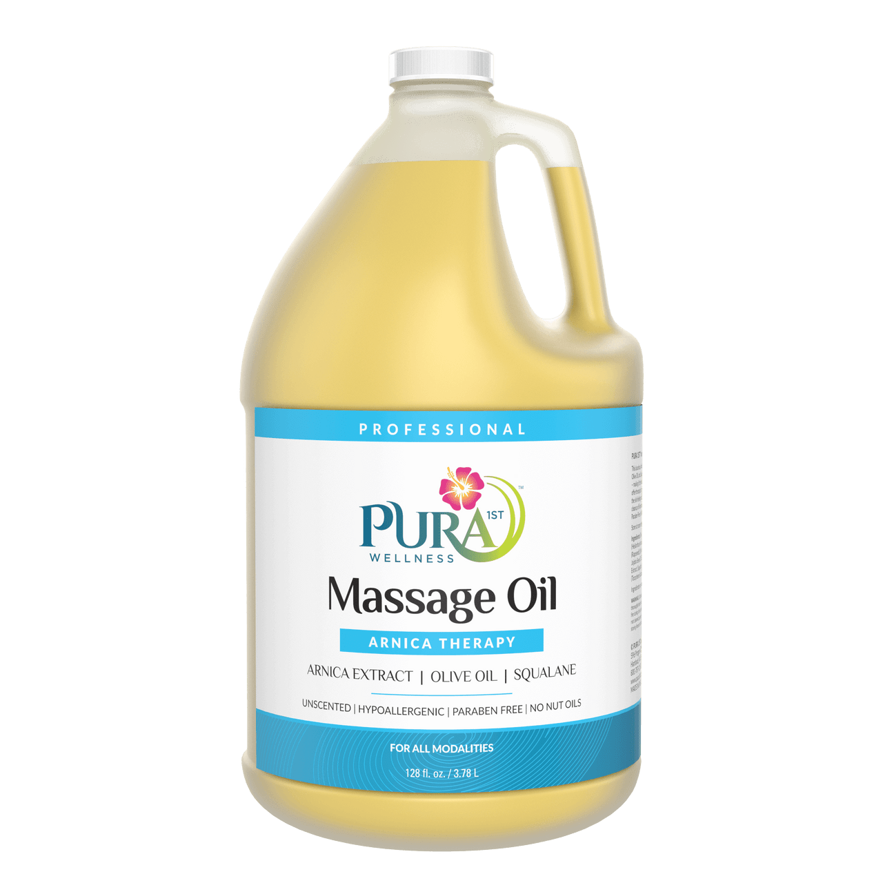 PURA 1ST Wellness Professional Arnica Therapy Massage Oil – This luxurious Arnica Massage Oil is naturally enriched with Arnica Extract, Olive Oil, and Squalane known for it’s superior skin moisturizing properties – making it the healthy choice for professional massage. Formulated to offer therapists a finely textured satiny glide that is easily absorbed leaving the skin feeling soft and smooth. Completely water dispersible for easy cleanup of linens and fabrics. For all modalities.