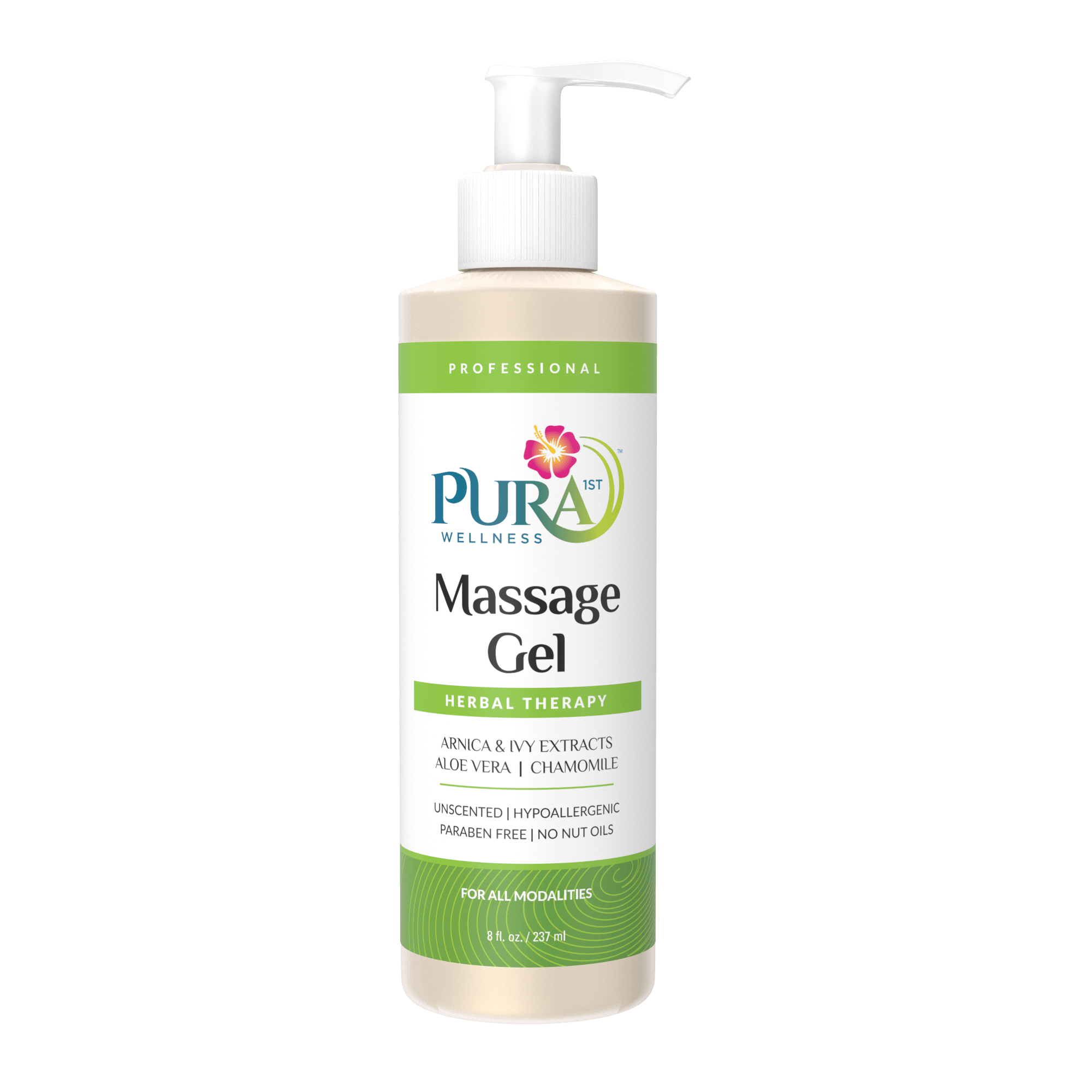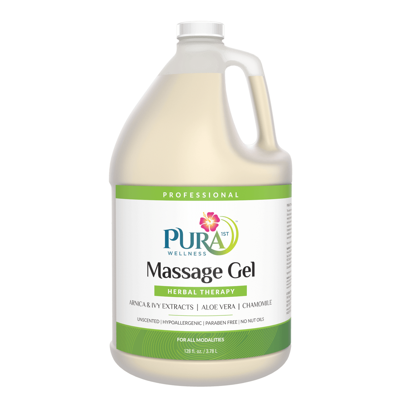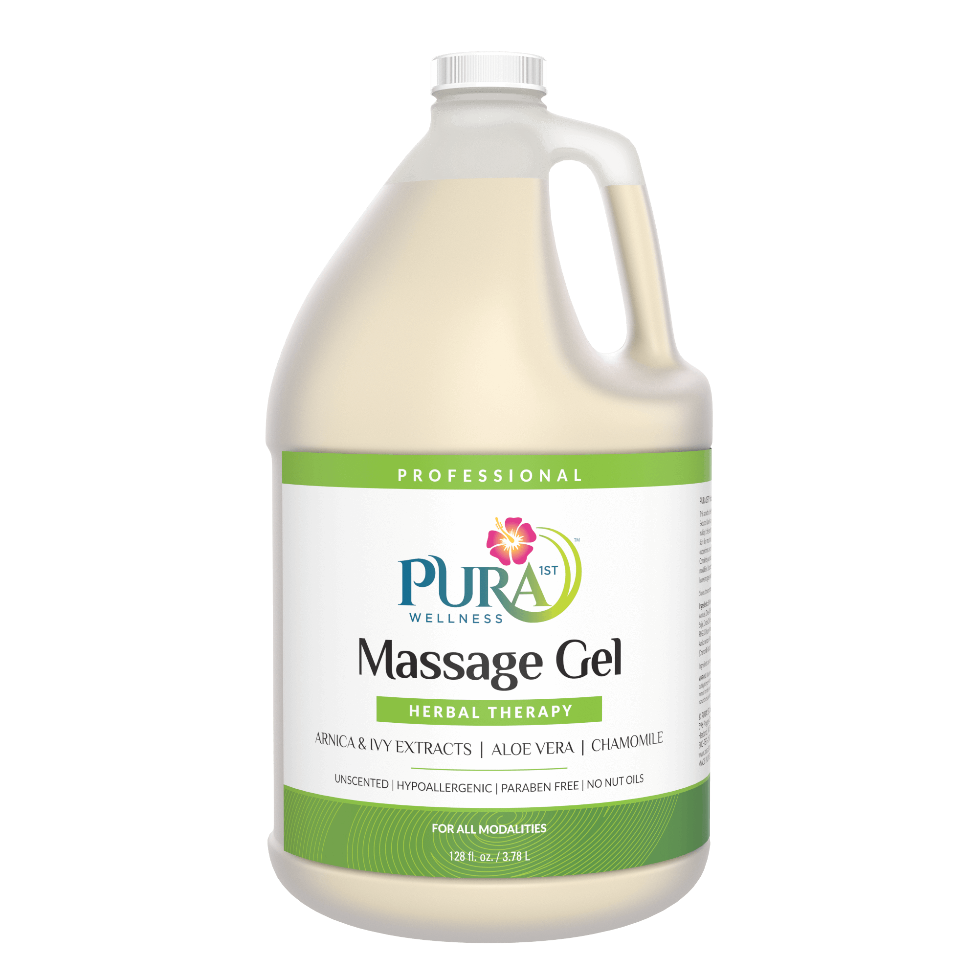 PURA 1ST Wellness Professional Herbal Therapy Massage Gel – This smooth rich Herbal Massage Gel is naturally infused with Arnica & Ivy Extracts, Aloe Vera, and Chamomile known for it’s exceptional quality for the skin, making it the healthy choice for professional massage. Formulated to leave the skin silky smooth and offer therapists a light oil texture and lasting glide that outperforms creams, lotions and oils so you will use less per application. Completely water dispersible for easy cleanup of linens and fabrics. For all modalities.