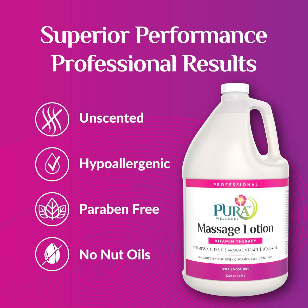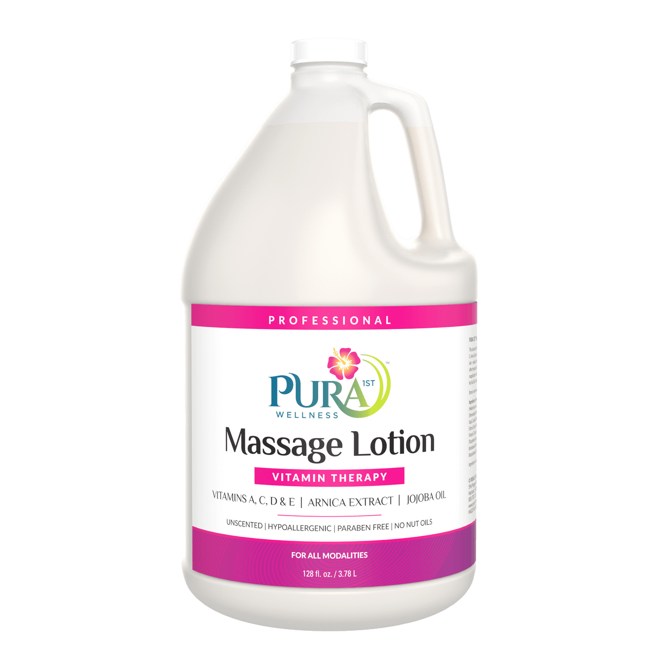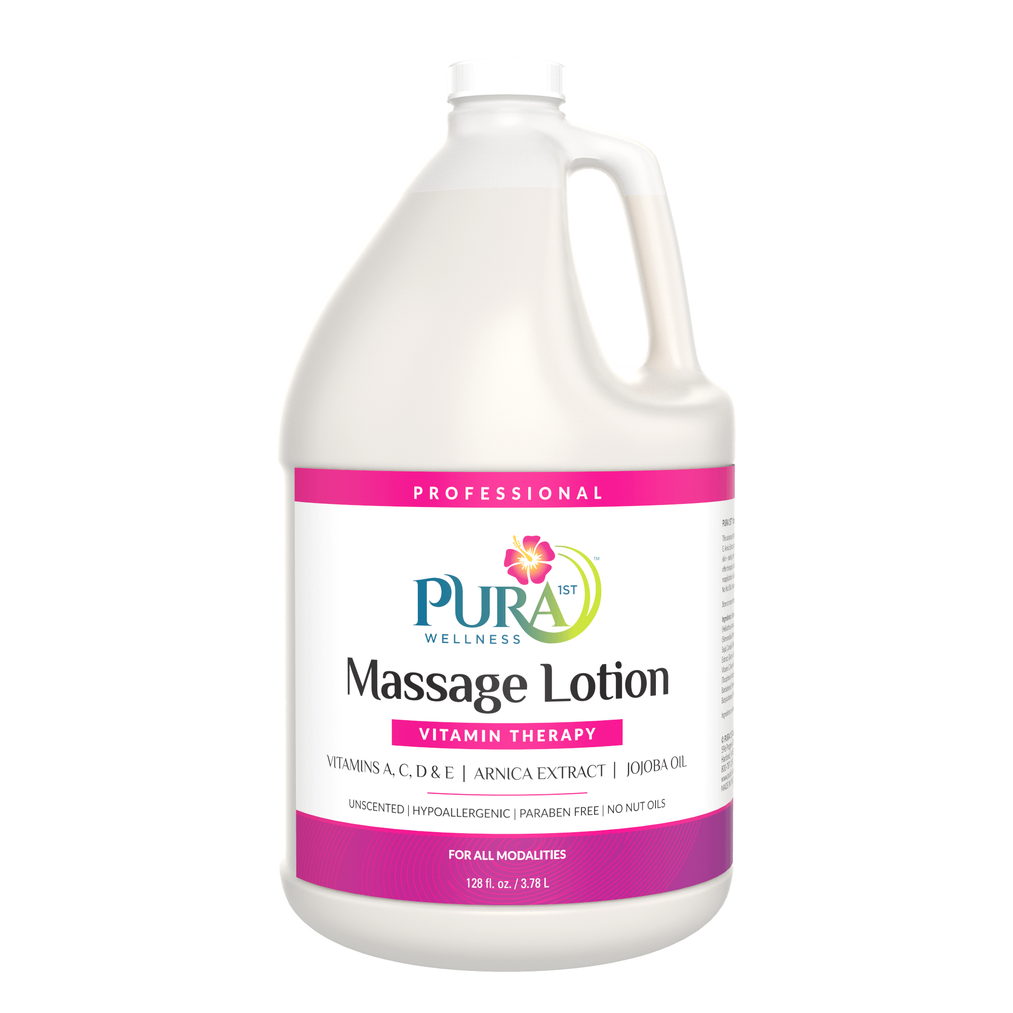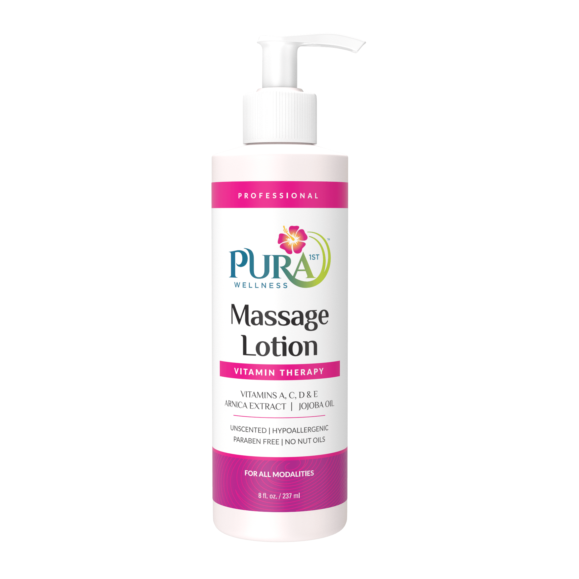 PURA 1ST Wellness Professional Vitamin Therapy Massage Lotion – This advanced Vitamin Massage Lotion is enriched with Vitamins A, C, D & E, Arnica Extract, and Jojoba Oil known for it’s exceptional quality for the skin – making it the healthy choice for professional massage. Formulated to offer therapists a lasting glide with a lighter touch, requiring less reapplications. For all modalities.
