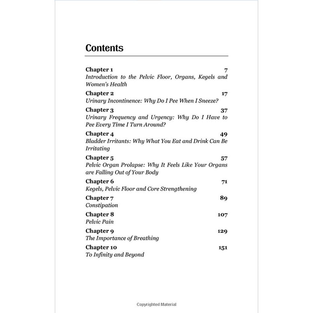 This book is for any woman who has avoided the trampoline or yoga class for fear of leaking. If you’ve had pelvic pain, constipation, or urinary frequency, this book is also for you. With a tasteful sense of humor, Dr. Olson explains how to cure urinary incontinence using Kegels, which foods and drinks to avoid for urinary urgency, how to manage constipation, how breathing and basic exercises can help with pelvic pain, and which exercises are most beneficial to women’s health.
