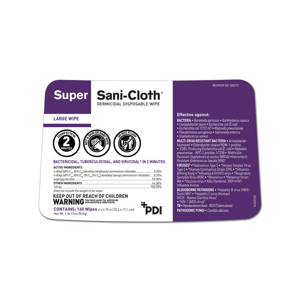Super Sani-Cloth Germicidal Disposable Wipes Large 160/Tub